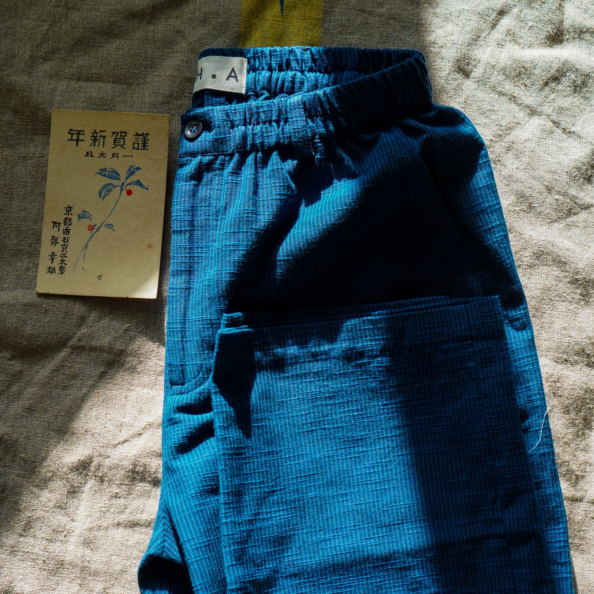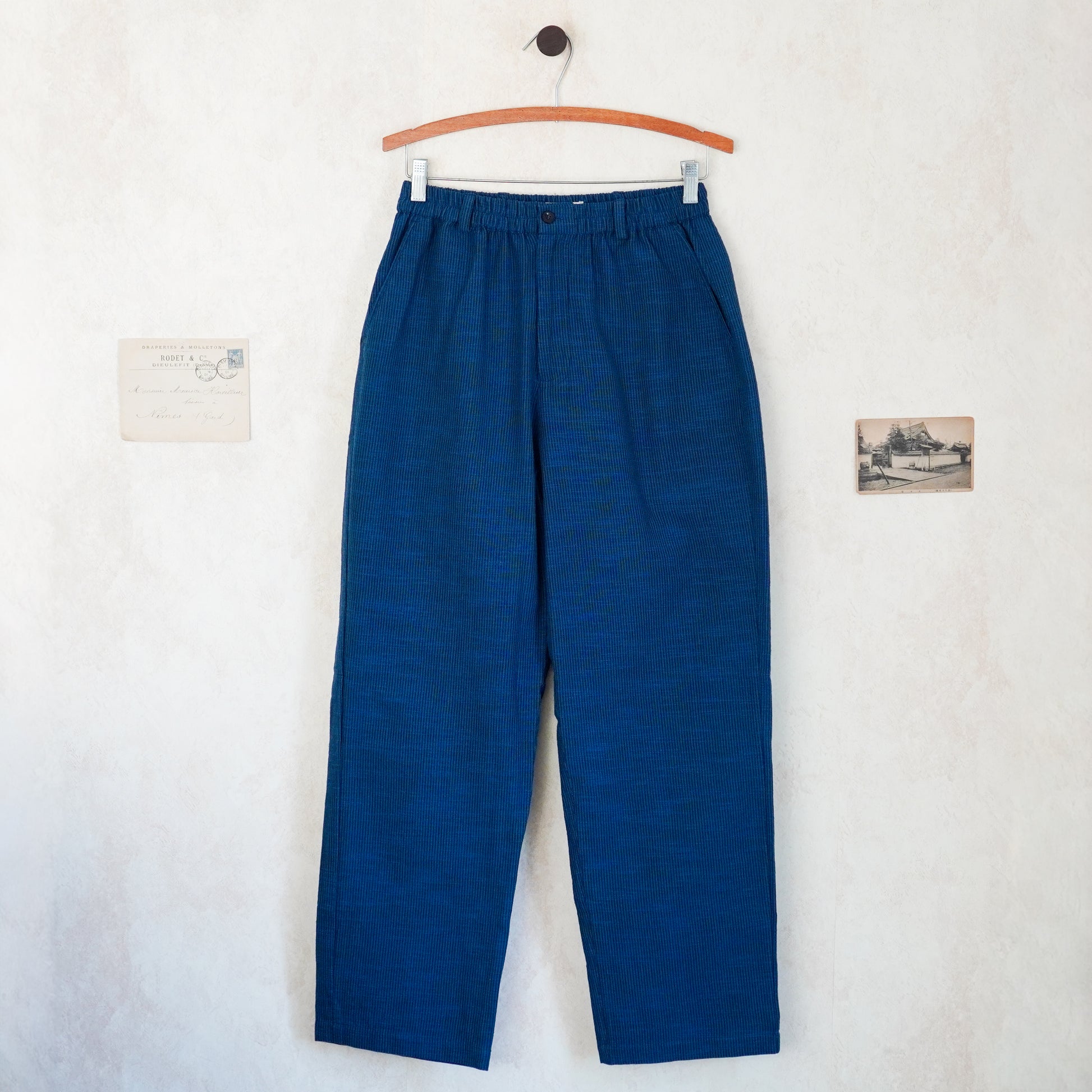- Yarn-dyed cotton trousers