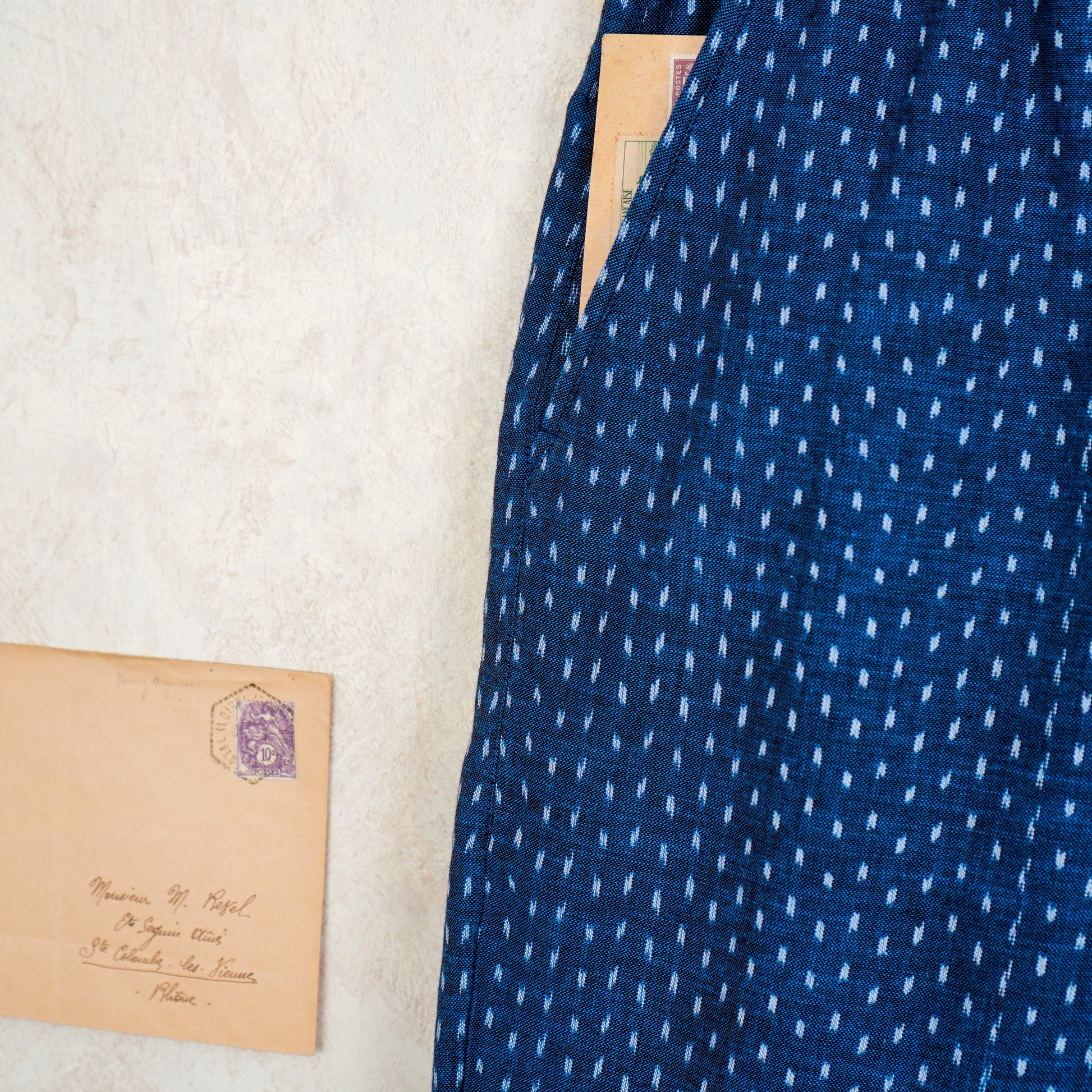 - Japanese ikat indigo trousers