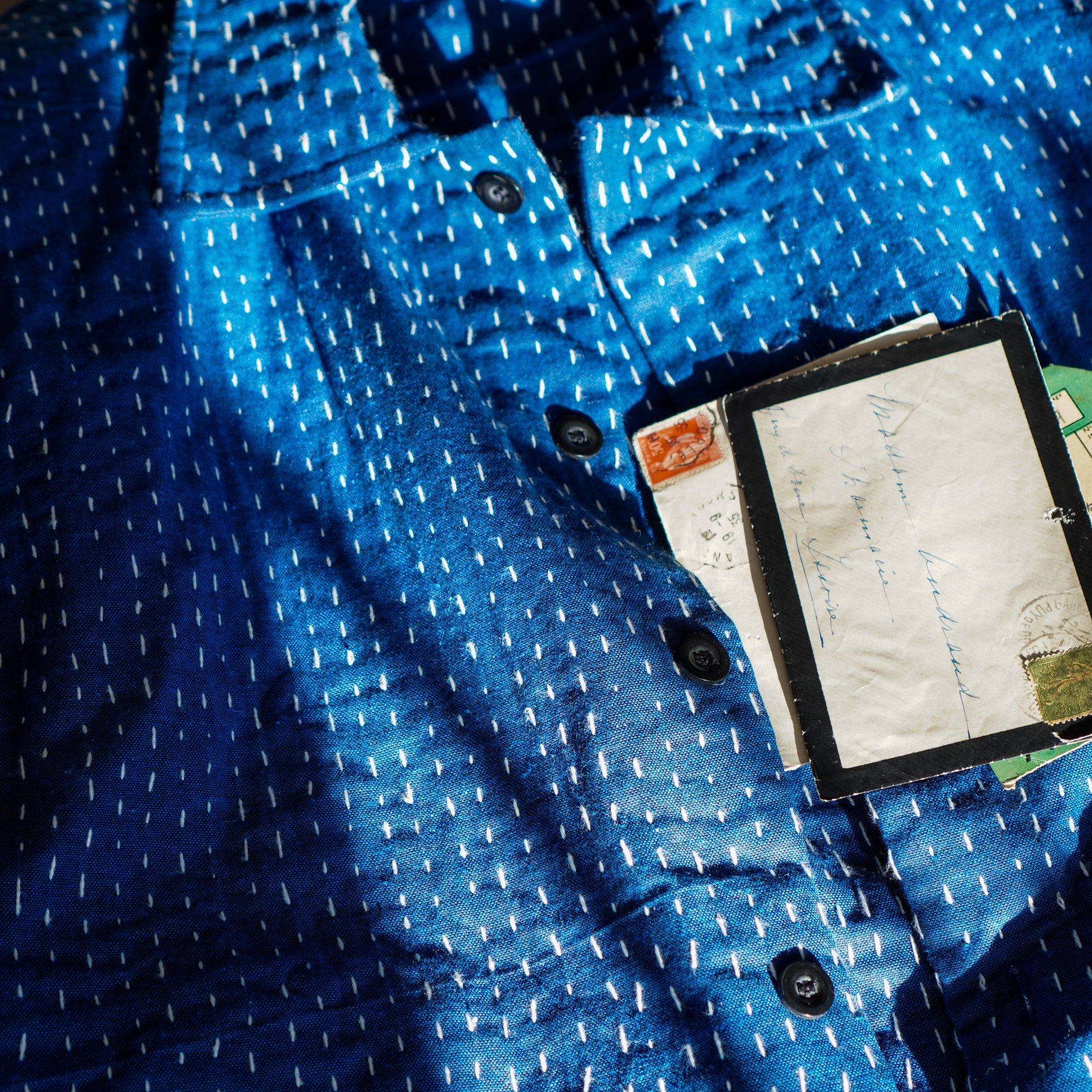 - Japanese sashiko hand-stitching throughout